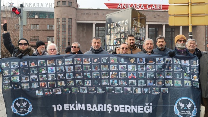 Ankara’da 10 Ekim 2015’te Emek, Barış ve Demokrasi Mitingi’ne yönelik DEAŞ saldırısında yaşamını yitirenler, katliamın 123’üncü ayında Ankara Garı önünde anıldı. Anmaya 10 Ekim Barış Derneği, İnsan Hakları Derneği (İHD) Ankara Şubesi üyeleri ile katliamda hayatını kaybedenlerin aileleri katıldı.