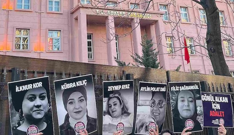 Kadın Cinayetlerini Durduracağız Platformu bugün Adalet Bakanlığı önündeydi. Türkiye’de son 24 saatte altı kadının katledildiğini, öldürülen üç kadının faili hakkında uzaklaştırma kararı olduğunu belirtti. “Bakanlığımızın hizmetlerinden faydalanan aileleri evlerinde ziyaret edeceğiz. Şehit yakınlarımızı, gazilerimizi, koruyucu ailelerimizi yalnız bırakmayacağız” diyen, 24 saat içinde altı kadının ölümüne ise kayıtsız kalan Aile ve Sosyal Politikalar Bakanı Mahinur Özdemir Göktaş’a tepki gösterildi. kadınlara birlikte mücadele çağrısı yapıldı.
