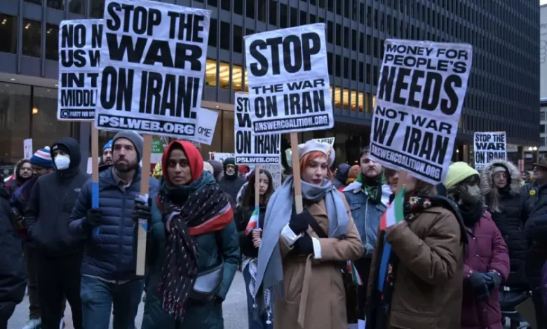 “Operation Epic Fury” haberlerinin ardından yüzlerce kişi, Adams ve Dearborn caddelerinde bir araya geldikten sonra Chicago şehir merkezinde yürüyüş gerçekleştirdi. Katılımcılar, saldırılara son verilmesi çağrısında bulunan ve yönetimin Kongre onayını devre dışı bırakmasını eleştiren pankartlar taşıdı.
