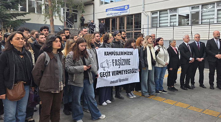 Ankara Üniversitesi’nde öğrenciler, artan baskılar ve çeteler tarafından düzenlenen saldırılara karşı Cebeci Yerleşkesi Yemekhanesi önünde basın açıklaması gerçekleştirdi. Açıklamaya akademisyenler ve bazı milletvekilleri de destek verdi.