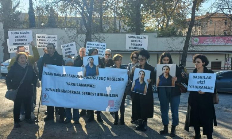İnsan Hakları Derneği (İHD) İstanbul Şubesi Hapishane Komisyonu ile Türkiye İnsan Hakları Vakfı (TİHV), insan hakları savunucusu Suna Bilgin’in tutuklanmasına karşı İstanbul Bakırköy Kadın Kapalı Hapishanesi önünde basın açıklaması yaptı. Açıklamada, “İnsan hakları savunuculuğu suç değildir, yargılanamaz. Suna Bilgin derhal serbest bırakılsın” pankartı açıldı. Eyleme, İHD’nin önceki dönem Genel Başkanı Eren Keskin’in yanı sıra çok sayıda hak savunucusu katıldı.