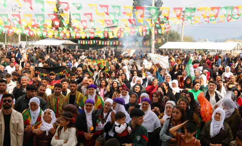 Mersin’de Newroz, yağışlı havaya rağmen büyük bir coşkuyla kutlandı. Akdeniz ilçesindeki Tırmıl Alanı’nda gerçekleştirilen kutlama için sabahın erken saatlerinde itibaren gelişler başladı. Yöresel kıyafetlerini giyen 7’den 70’e yurttaşlar, alanı sarı, kırımızı ve yeşil renklerine büründürdü. Alanda buluşan kitle, sık sık “Bijî Serok Apo” sloganı atarak halaya durdu. Saygı duruşunun ardından program konuşmalarla başladı.