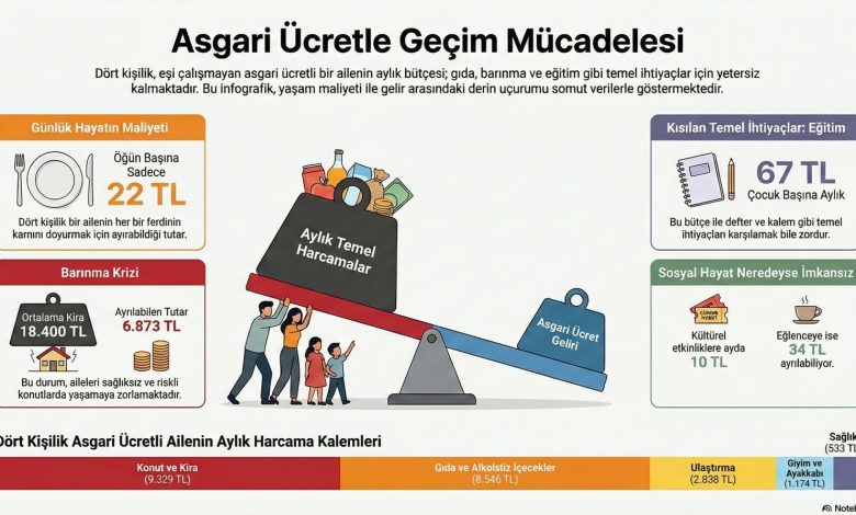 Birleşik Metal-İş Sendikası Sınıf Araştırmaları Merkezi (BİSAM), Türkiye’de milyonlarca ailenin geçim kaynağı olan asgari ücretin 2026 yılı için belirlenen seviyesinin alım gücü üzerindeki etkilerini çarpıcı verilerle ortaya koydu.