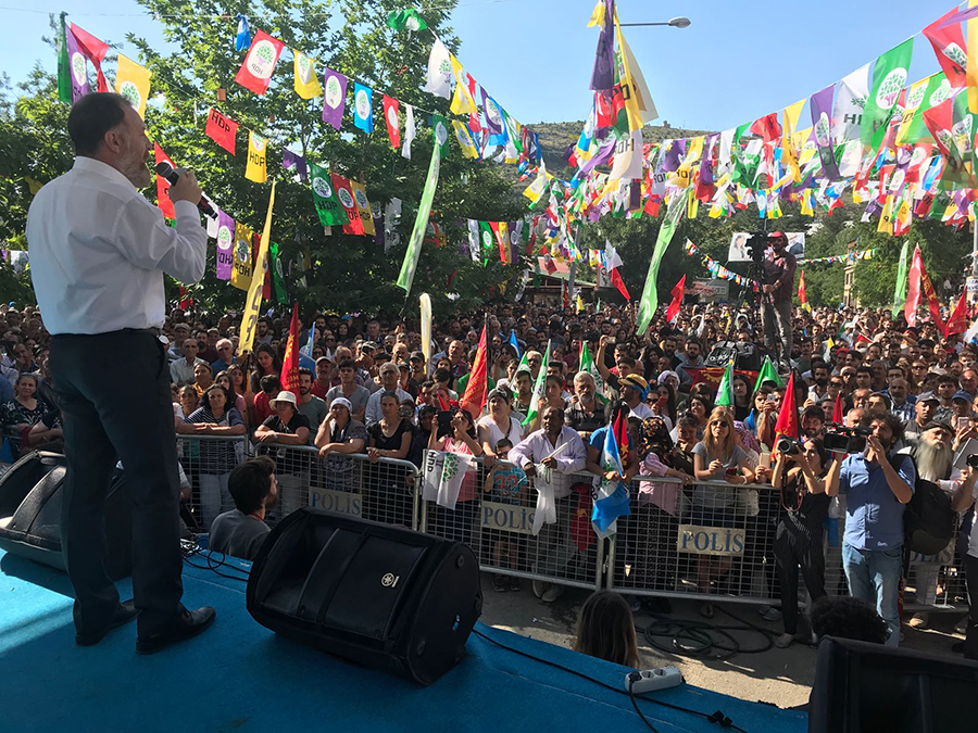 “Bunun için birinci turda bir oy HDP’ye bir oy Demirtaş’a. İkinci turda ise ya Erdoğan rejimi ya da demokrasi diyeceğiz. Ülkedeki sorunların çözüm yolu çünkü demokrasidir. Gelin eşit yurttaşlık temelinde bir anayasa yapalım. Bizim sözümüz budur. Bu Alevilerin, Ermenilerin, Süryanilerin, bu topraklarda yaşayan 73 milletin sözüdür. 25 Haziran’da hep birlikte umudun halayına duracağız. Bir arada yaşamanın, çoğulcu yaşamın iradesini göstereceğiz” diye sözlerini sürdüren Temelli, Erdoğan’ın bu ülkeye en büyük vaadinin OHAL rejimi olduğunu vurguladı ve valilere, kaymakamlara, kolluk güçlerine Erdoğan’a uyarak suç işlememeleri ve halka hizmet etmeleri çağrısında bulundu.