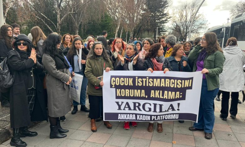 Ankara Kadın Platformu’nun çağrısı ile Meclis önünde bir araya gelen kadınlar Meclis’te stajyer olarak çalışan çocukların cinsel istismara maruz kalmasına karşı eylemde.