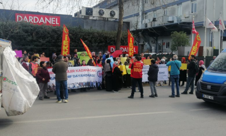 Paylaşımda, İşçi Emekçi Kadın Komisyonları öncülüğünde direnişlerini sürdüren Dardanel kadın işçilerine destek verildiği belirtilerek dayanışmanın büyütüleceği vurgulandı.
