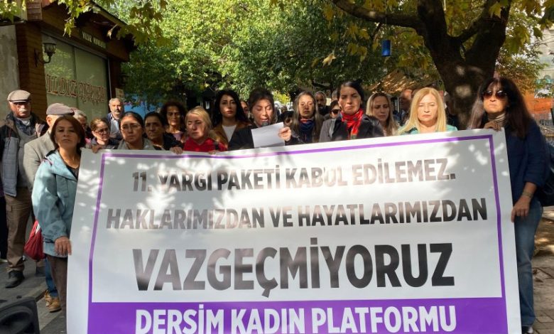Çok sayıda kentte kadınların 11. Yargı Paketi taslağına karşı düzenlediği eylemler kapsamında Dersim Kadın Platformu’nun çağrısıyla Sanat Sokağı’nda bir araya gelen kadınlar, taslağın kazanılmış hakları geri almayı hedeflediğini vurgulayarak protesto etti.