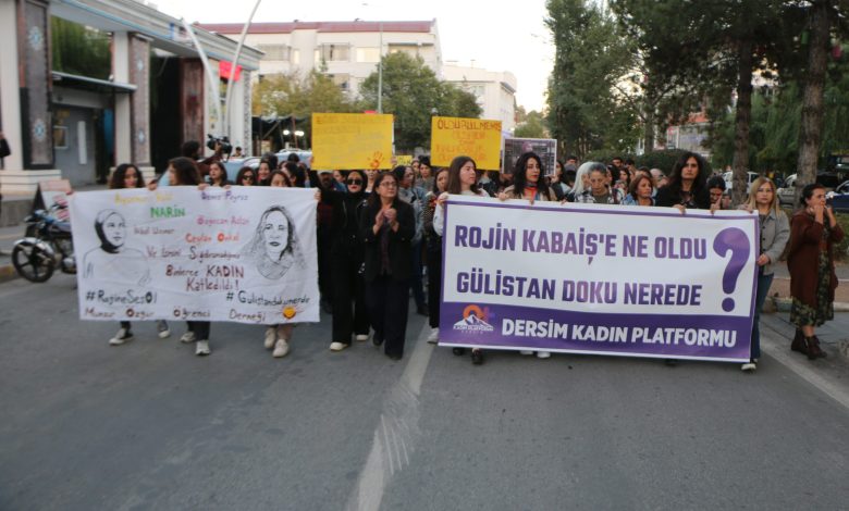 Dersim Kadın Platformu öncülüğünde yüzlerce kadın, Rojin Kabaiş için Sanat Sokağı’ndan Seyit Rıza Meydanı’na yürüdü. ‘Rojin Kabaiş’e ne oldu, Gülistan Doku nerede’ yazılı pankartın taşındığı yürüyüşte kadınlar tarafından sık sık ‘İntihar değil bu bir cinayet’ , ‘Kadın cinayetleri politiktir’ , ‘Rojin için adalet’ sloganları atıldı.