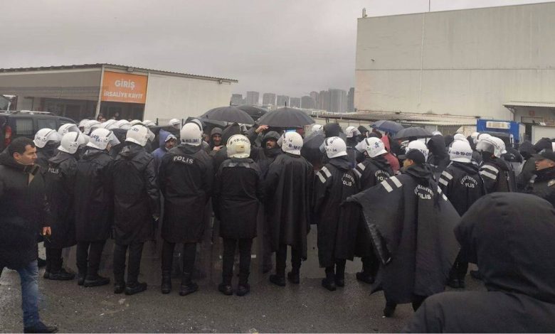 Esenyurt Migros deposunda 11 gündür direnişte olan işçiler, çevik kuvvet ablukası altında yağmurda bekletildi. İşçilerin korunmak için kurmak istediği tente “mevzuata aykırı” denilerek engellendi.