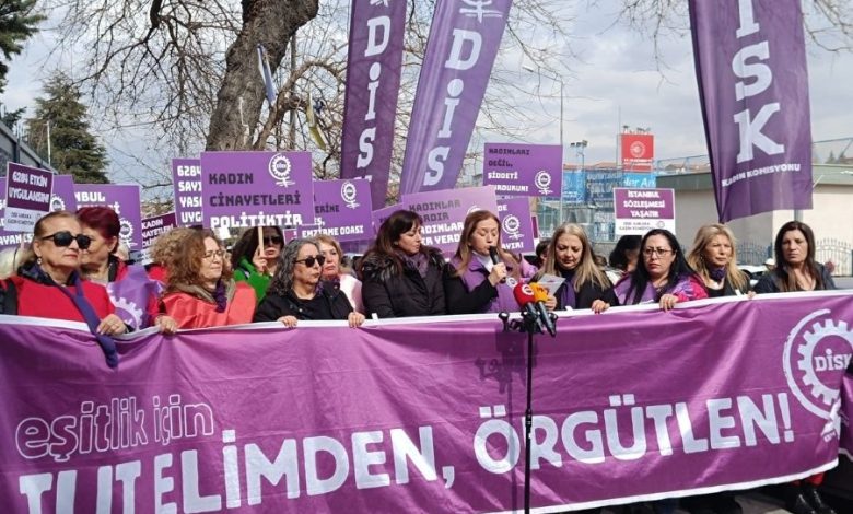 Devrimci İşçi Sendikaları Konfederasyonu (DİSK) Kadın Komisyonu, 8 Mart Dünya Emekçi Kadınlar Günü kapsamında Çalışma ve Sosyal Güvenlik Bakanlığı önünde basın açıklaması yaptı. “Eşitlik İçin Tut Elimden Örgütlen” çağrısıyla gerçekleştirilen açıklamada kadın emeği ve toplumsal cinsiyet eşitsizliği vurgulandı.