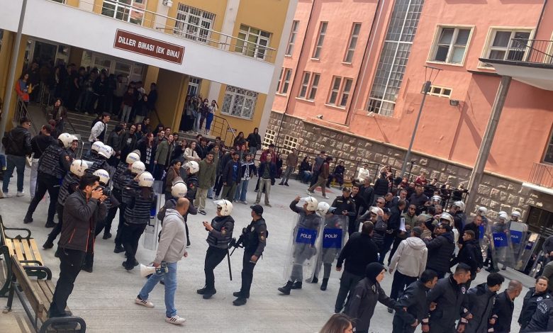 Açıklama sırasında okula çevik kuvvet girerken, öğrenciler bu sırada faşistlerin saldırı girişimini bir kez daha boşa düşürdü.