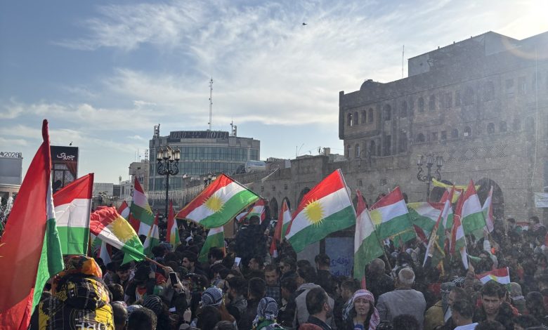 Irak Kürdistan Bölgesi’nin Erbil kentinde Rojava’ya destek eylemleri günlerdir sürüyor. Kent merkezindeki Kale Meydanı’nda bir araya gelen halk, Rojava’ya yönelik saldırıları protesto ederek dayanışma mesajları verdi. Eylemlerde sık sık “Dört parça Kürdistan’ın birliği” ve “Rojava onurumuzdur” sloganları atıldı.