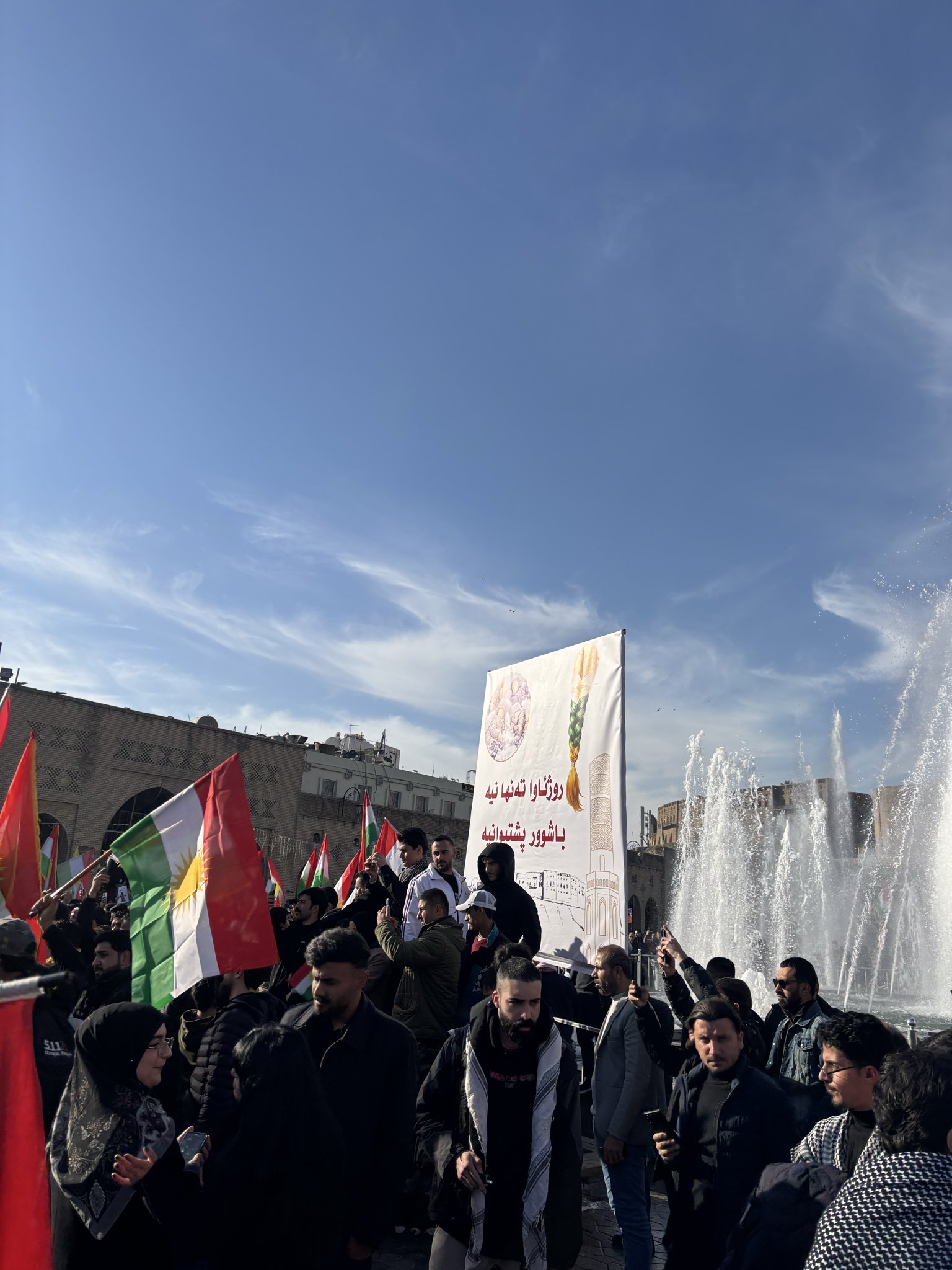 Irak Kürdistan Bölgesi’nin Erbil kentinde Rojava’ya destek eylemleri günlerdir sürüyor. Kent merkezindeki Kale Meydanı’nda bir araya gelen halk, Rojava’ya yönelik saldırıları protesto ederek dayanışma mesajları verdi. Eylemlerde sık sık “Dört parça Kürdistan’ın birliği” ve “Rojava onurumuzdur” sloganları atıldı.