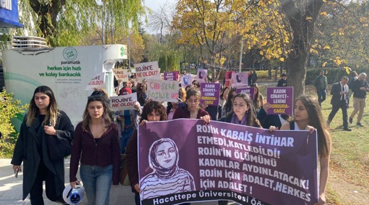 Hacettepe Üniversitesi öğrencileri, kaybolduktan sonra katledilmiş halde bulunan Van Yüzüncü Yıl Üniversitesi öğrencisi Rojin Kabaiş için kampüs içinde bulunan Mor Duvar önünde yürüyüş gerçekleştirdi.