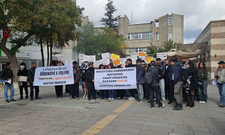Hacettepe Üniversitesi öğrencileri, 15 Ekim’de yemekhanelerde yürürlüğe girecek rezervasyon sistemine ve yemek ücretlerine yapılan zamlara karşı “Beslenme hakkımız gasp edilemez” sloganıyla eylem yaptı.