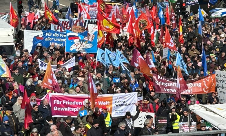 Almanya’nın Hamburg kentinde binlerce kişi, Paskalya yürüyüşleri kapsamında emperyalist savaş politikalarına, artan silahlanmaya ve faşizme karşı sokağa çıktı. Landwehr semtinde düzenlenen yürüyüşe yaklaşık 5 bin kişi katıldı.
