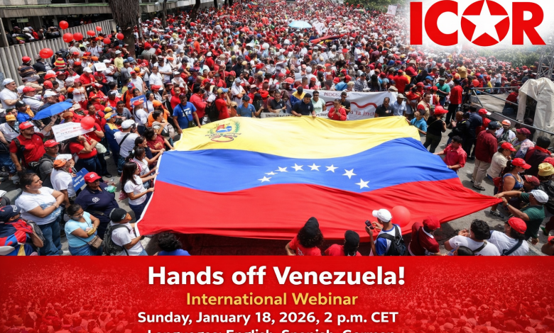 Uluslararası Eylem Günü hazırlıkları kapsamında ICOR, 18 Ocak 2026 Pazar günü “Venezuela’dan Elinizi Çekin!” başlıklı bir uluslararası dayanışma webinarı da düzenleyecek. Avrupa saatiyle 14.00’te (CET) başlayacak webinarda Amerika kıtasından sendikacılar, devrimci örgüt temsilcileri ve siyasi aktivistler söz alacak.