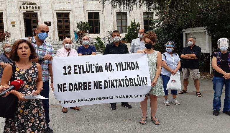 İnsan Hakları Derneği (İHD) İstanbul Şubesi, 12 Eylül askeri faşist darbesinin 40. yılında, darbenin duyurulduğu yer olan Elmadağ’daki TRT İstanbul Radyosu önünde açıklama yaptı.