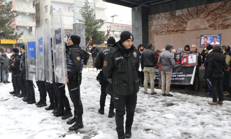Polis kalkanlarının ardında yapılan açıklamada, 25 Ocak 2001 tarihinde Silopi’de gözaltına alındıktan sonra kaybedilen HADEP ilçe yöneticileri Ebubekir Deniz ve Serdar Tanış’ın hikâyesi okundu. İHD Kayıp Komisyonu üyesi Berfin Elçi, Tanış ve Deniz’in HADEP ilçe teşkilatını kurma çalışmaları sırasında yoğun tehdit ve baskılara maruz kaldığını, Silopi İlçe Jandarma Komutanlığı’na çağrıldıktan sonra kendilerinden bir daha haber alınamadığını aktardı.