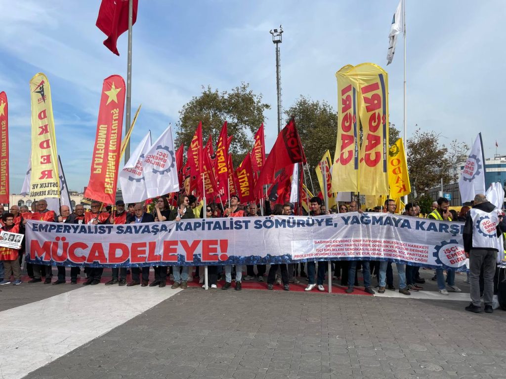 Eylem boyunca “Yaşasın işçilerin birliği, halkların kardeşliği!”, “İşçilerin birliği sermayeyi yenecek!”, “İşçi gençlik el ele mücadeleye!”, “Erkek vuruyor devlet koruyor!”, “Hak verilmez, alınır; zafer sokakta kazanılır!”, “İnsanca bir yaşam sosyalizmde!” ve “Savaşa değil, emekçiye bütçe!” sloganları atıldı.