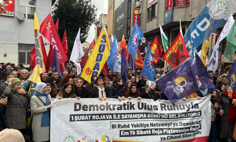 Özgür Kadın Hareketi (TJA), Halkların Eşitlik ve Demokrasi Partisi (DEM Parti) ve Halkların Demokratik Kongresi’nin (HDK) çağrısıyla İstanbul Kadıköy’de 1 Şubat Rojava ile Dayanışma Günü kapsamında yürüyüş düzenlendi. Halitağa Caddesi’nden başlayan yürüyüş, DEM Parti Kadıköy İlçe binasından Boğa Heykeli’ne kadar sürdü.