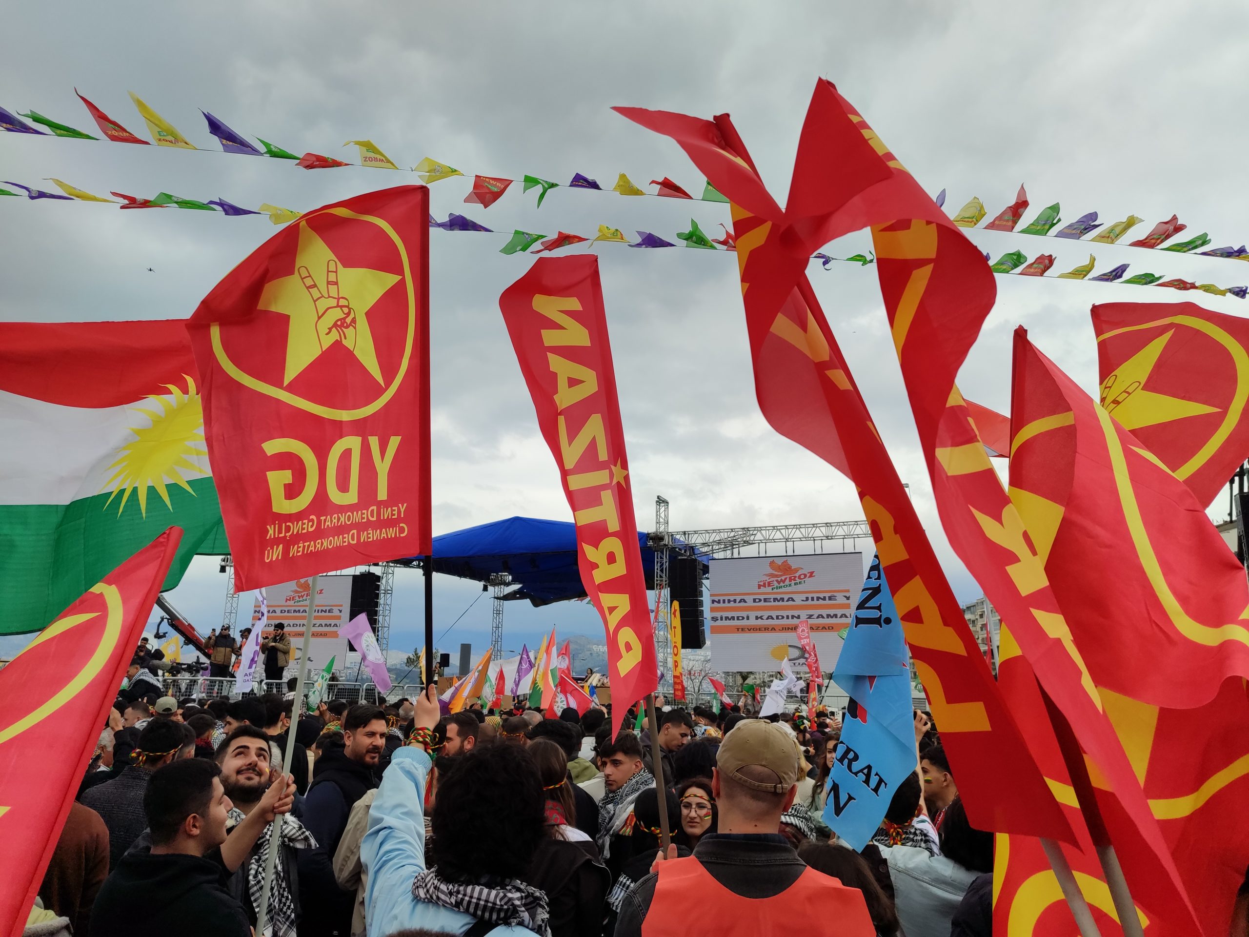 Sonrasında DEM Parti Merkezi Kadın Koordinasyonu üyesi Berna Çelik ve DEM Parti Meclis Üyesi Mehmet Sabri Gül, PKK Lideri Abdullah Öcalan’ın gönderdiği Newroz mesajını okudu.