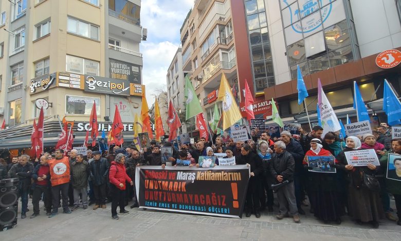 İzmir Emek ve Demokrasi Güçleri tarafından Roboski ve Maraş katliamında katledilenler için eylem gerçekleştirildi.