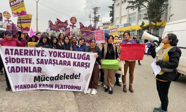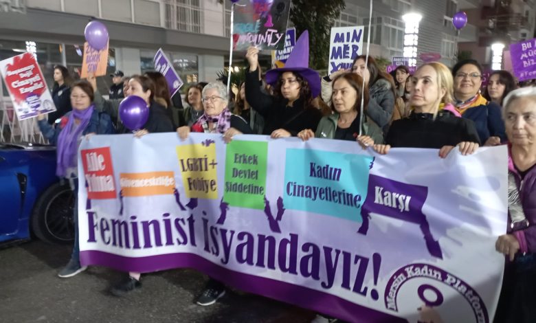 Kuşimoto Sokağı’ndan Özgecan Aslan Meydanı’na yürüyen Mersin Kadın Platformu, artan kadın cinayetlerine, LGBTİ+ düşmanlığına ve “Aile Yılı” baskılarına tepki gösterdi. Naz Dere, kadınlara kesilen para cezalarını hatırlatarak “Mücadelemizden vazgeçmeyeceğiz” dedi.