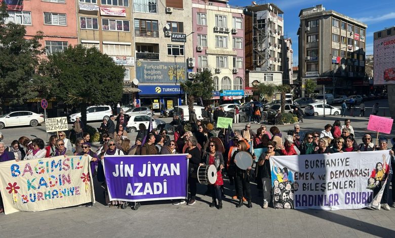 Burhaniye Emek ve Demokrasi Bileşenleri Kadınlar Grubu çağrısıyla yürüyüş ve basın açıklaması yaptı. Eski kütüphane önünde toplanan kadınlar Cumhuriyet Meydanı’na kadar yürüdü.