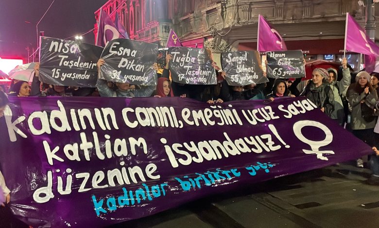 Kadın emeğinin sistematik olarak ucuz ve güvencesiz işlerde konumlandırıldığını vurgulayan Top, “Kadınlara ve genç kızlara ‘ev bütçesine katkı’ adı altında neredeyse bedava emek dayatılıyor. Bizim emeğimiz harcanabilir görülüyor. Bu, erkek egemen sistem ile sermayenin ortak politikasıdır” dedi.