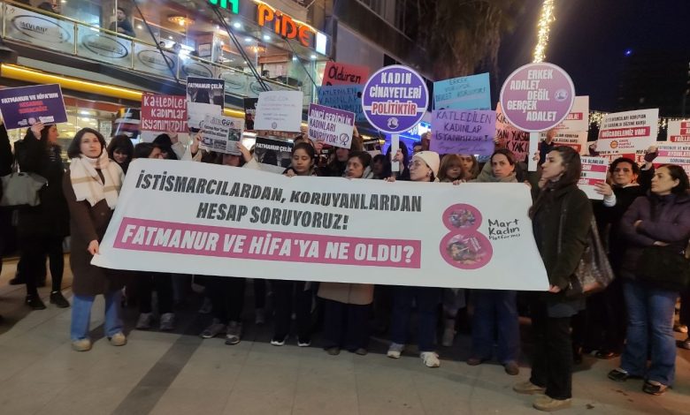 İstanbul’da 8 Mart Kadın Platformu, “İstismarcılardan, koruyanlardan hesap soruyoruz! Fatmanur ve Hifa’ya ne oldu” diyerek Zeytinburnu Marmaray’da bir araya geldi.