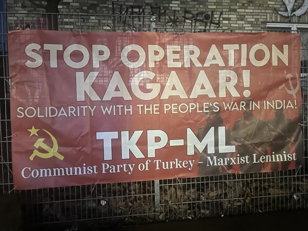 Hamburg’da 31 Mart’ta Hindistan’da yürütülen Kagar operasyonuna karşı TKP-ML militanları tarafından bir pankart asıldı.