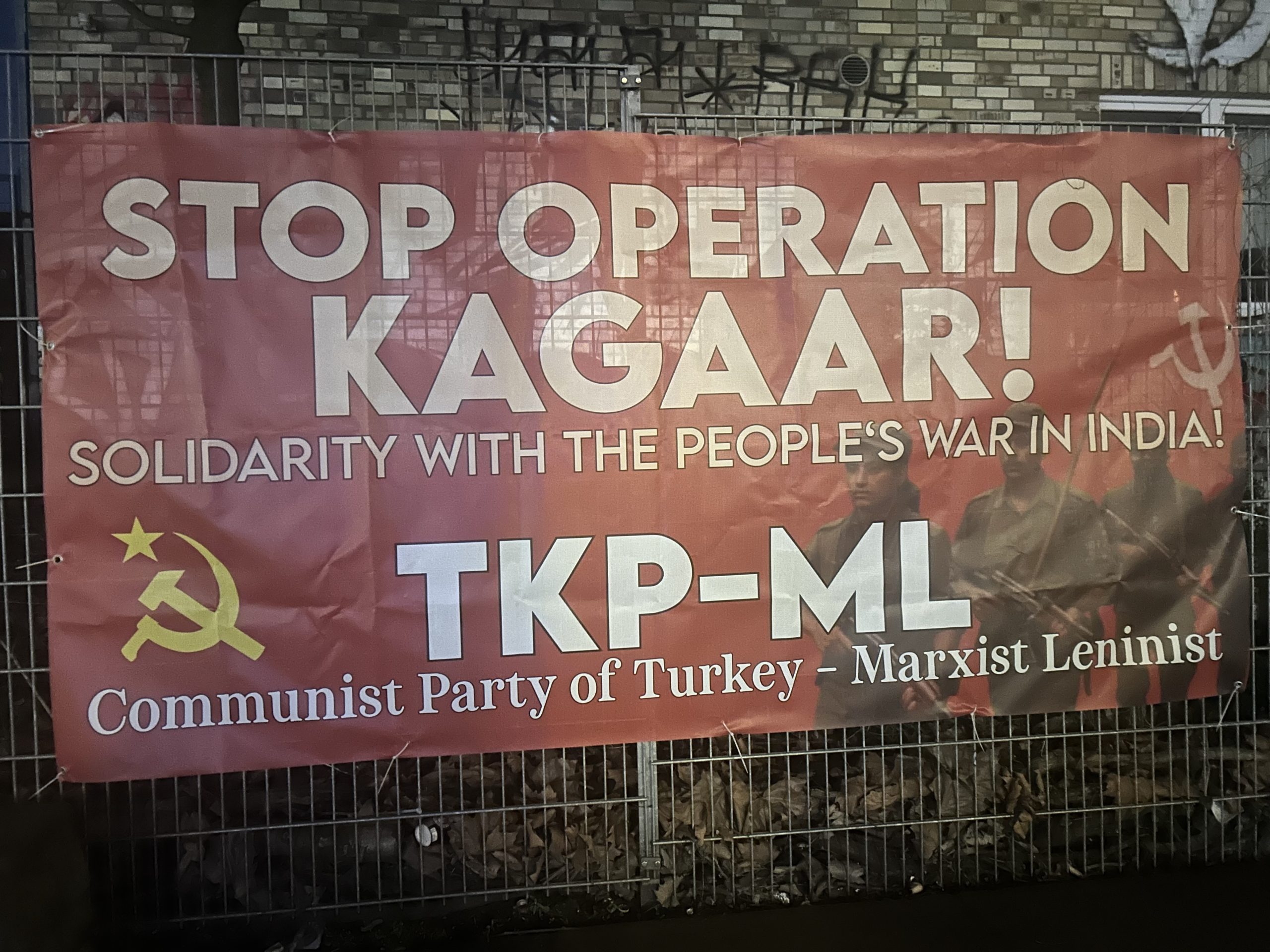Hamburg’da pankartı asan militanlar, “Kagaar Operasyonu”na Karşı Pankart Kagaar Operasyonu”na karşı TKP-MLtarafından pankart astıklarını belirterek, söz konusu eylemde, Hindistan’da yürütüldüğü iddia edilen operasyonlara dikkat çekildi.