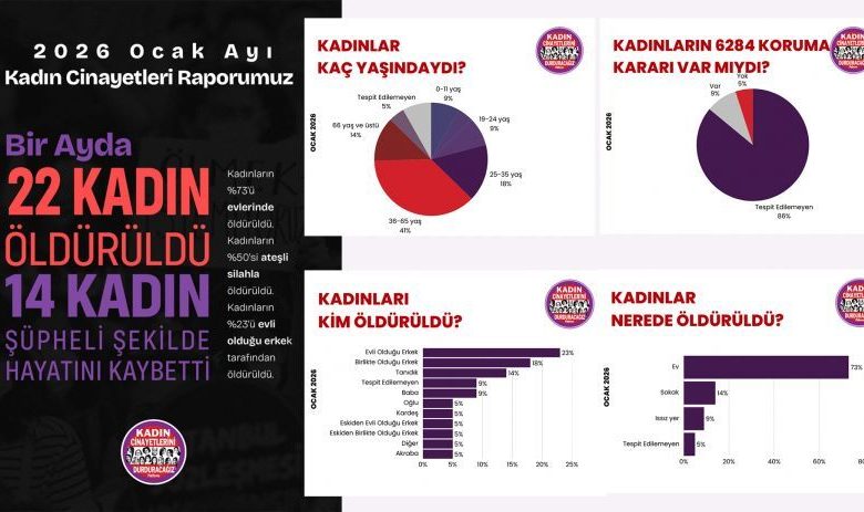 Kadın Cinayetlerini Durduracağız Platformu (KCDP), Ocak 2026’ya ilişkin kadın cinayetleri raporunu yayımladı. Rapora göre, Ocak ayında erkekler tarafından 22 kadın katledilirken, 14 kadın ise “şüpheli” şekilde hayatını kaybetmiş halde bulundu. Katledilen kadınların yüzde 73’ünün evlerinde, yüzde 23’ünün ise evli oldukları erkekler tarafından öldürüldüğü belirtildi.