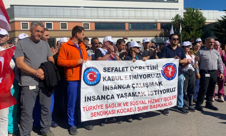 Sağlık-İş Genel Sekreteri Adem Sarıçoban ise sağlık işçilerinin sorunlarının KHK ile kadroya geçtikleri günden bu yana devam ettiğini belirterek “Bizi köle olarak görmeye devam ediyorlar. 600 bin kamu işçisi var, hiç duydunuz mu toplu sözleşme farklarını taksitle alan başka bir bakanlıkta eylem yapan gördünüz mü? Döner sermaye denen bir sisteme tabi tutarak bizleri kadro adı altında modern kölelik sürsün istiyorlar. Kocaeli bir işçi kenti, bu kentte Ford Otosan’ın sahibi binde 4 vergi ödüyor, sağlık işçileri ise yüzde 35 vergi veriyor, Türkiye’nin en çok vergi verenleri işçiler. İşçinin hakkını ödemeye gelince para yok” diye konuştu.