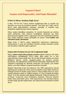 “8 Mart, 1857’de New York’ta dokuma tezgâhlarında daha iyi koşullar için direnirken can veren işçi kadınların mirasıdır. Yani bizim için 8 Mart, salt bir takvim günü değil; kadınların sömürüye, eşitsizliğe ve baskılara karşı başlattıkları örgütlü direnişin tarihsel simgesidir.”