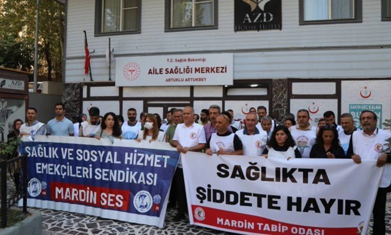Mardin’in Artuklu ilçesinde görev yapan Dr. Baran Şeşen’in bir hasta yakını tarafından darbedilmesi üzerine sağlık çalışanları eylem yaptı. Saldırının gerçekleştiği Artukbey Aile Sağlığı Merkezi önünde toplanan Mardin Sağlık Platformu üyeleri, “Sağlıkta Şiddete Hayır” pankartı açarak, “Sağlıkta şiddet istemiyoruz” ve “Sağlıkta ticaret ölüm getirir” sloganları attı.