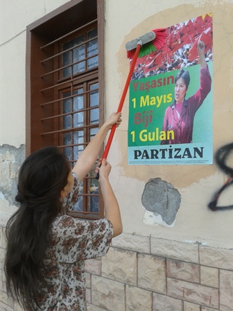 Bildiri ve pullarımızla çalışmamızı daha da görünür hale getirmeye çalıştık. Akşam saatlerinde afiş yaparlarken ihbar üzerine polislerin gelmesiyle Mağazalar karakoluna götürülen iki arkadaşımıza ise 1500’er lira para cezası kesilmiştir. Buradan anlıyoruz ki 1 Mayıs çalışmalarının yoğun olması devleti bir hayli öfkelendirmiştir.