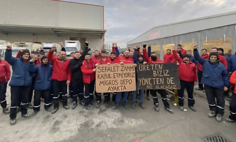 Migros depo işçilerinin yüzde 28 zam dayatmasına karşı başlattıkları direniş altıncı gününde devam ediyor. Direniş altıncı gününde Ankara’daki depolara da sıçradı. Sincan ve Gölbaşı’nda bulunan depolarda işçiler iş bırakmaya hazırlanırken yöneticileri tarafından baskı görmeye başladı.