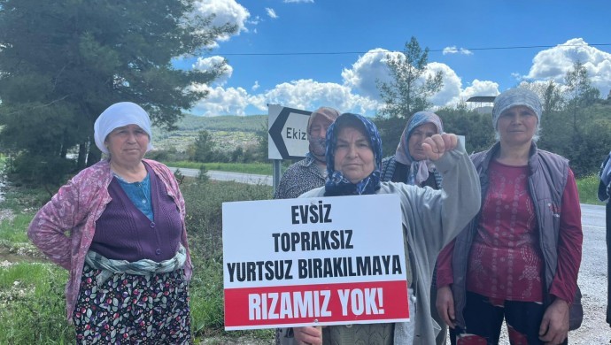 Köylüler, acele kamulaştırma kararına karşı açtıkları davanın Danıştay’da devam etmesine rağmen, keşif heyetinin bölgeye gelmesine tepki gösterdi. Köylüler, “Toprağıma, zeytinime, geleceğime dokunma” ve “Evsiz, topraksız, yurtsuz bırakılmaya rızamız yok” dövizleri taşıdı.