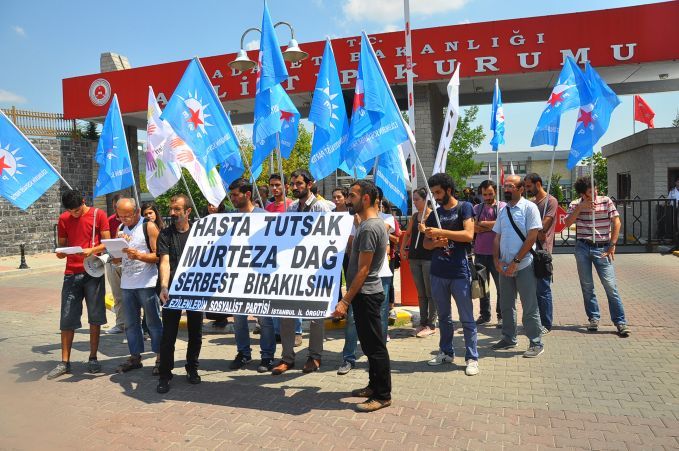 Ezilenlerin Sosyalist Partisi İstanbul İl Örgütü de; bu hak ihlalini, yaptıkları bir eylemle protesto etti. ESP, hasta tutsak Mürteza Dağ’ın serbest bırakılması talebiyle Adil Tıp Kurumu önünde açıklama yaptı.