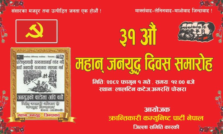 Nepal Devrimci Komünist Partisi, Halk Savaşı’nın 31. yılı dolayısıyla yayımladığı açıklamada mevcut siyasi ve ekonomik süreci değerlendirerek 21 Mart 2026’da yapılması planlanan parlamento seçimlerinin boykot edilmesi çağrısında bulundu.