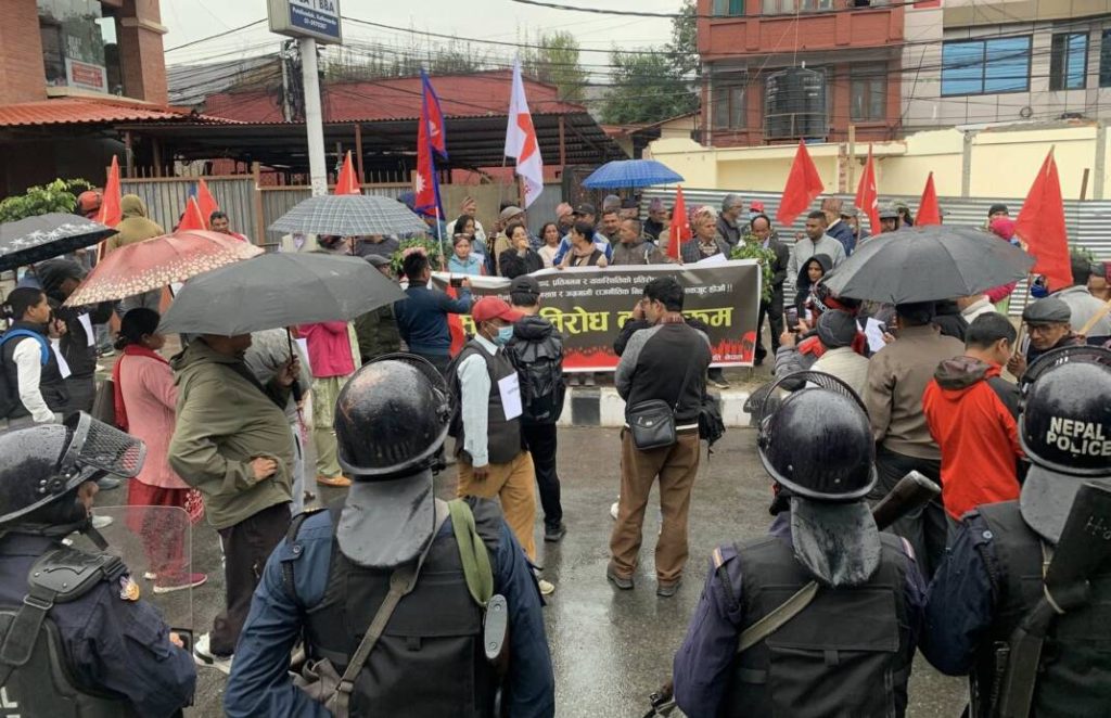 Katmandu | Emperyalistler ve yayılmacılar, ajanları aracılığıyla Nepal’in bağımsızlığına, egemenliğine ve toprak bütünlüğüne, hatta Nepal’in varlığına saldırdıktan sonra, Nepal Devrimci Komünist Partisi ve 11 solcu yapı ve örgütten oluşan Ortak Mücadele Komitesi, Salı günü Maitighar Mandala’da bir protesto gösterisi düzenledi.