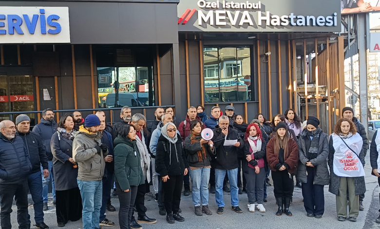 İstanbul’da deprem riski gerekçesiyle önce ücretsiz izne çıkarılan ve iş akitleri askıya alınan Özel Okmeydanı Hastanesi’ndeki sağlık emekçileri, direnişin 50. gününde hastane sahibi Şafak Grubu’na ait olan MEVA Hastanesi önündeydi. Sağlık emekçileri kıdem ve ihbar tazminatları, yatırılmayan maaşları ve yan haklarının her kuruşunu alana kadar direnişe devam edeceklerini dile getirdi.