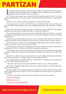 2026 İstanbul 1 Mayıs sürecine ilişkin açıklama yapan Partizan Taksim'e çağrı yaptı.