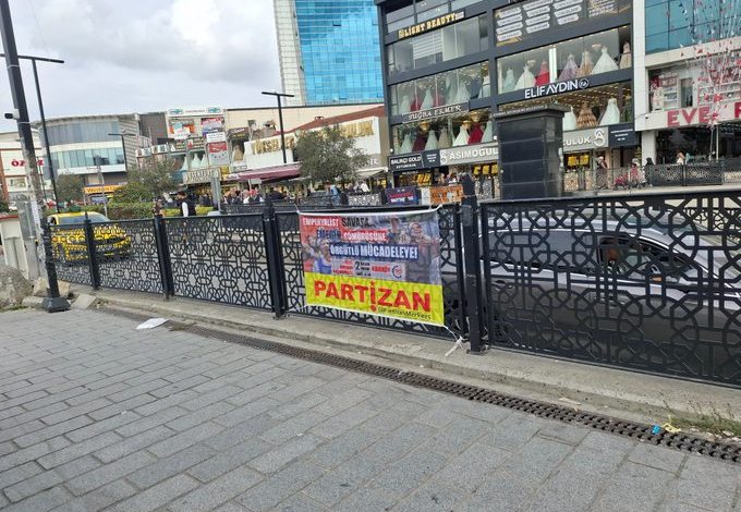 Dün İstanbul’da üzerinde “Emperyalist Savaşa ve Emeğin Sömürüsüne karşı Örgütlü Mücadeleye, işçi-emekçi buluşması” yazılı pankart asan Partizan (@PartizanMerkez5) şunları paylaştı: