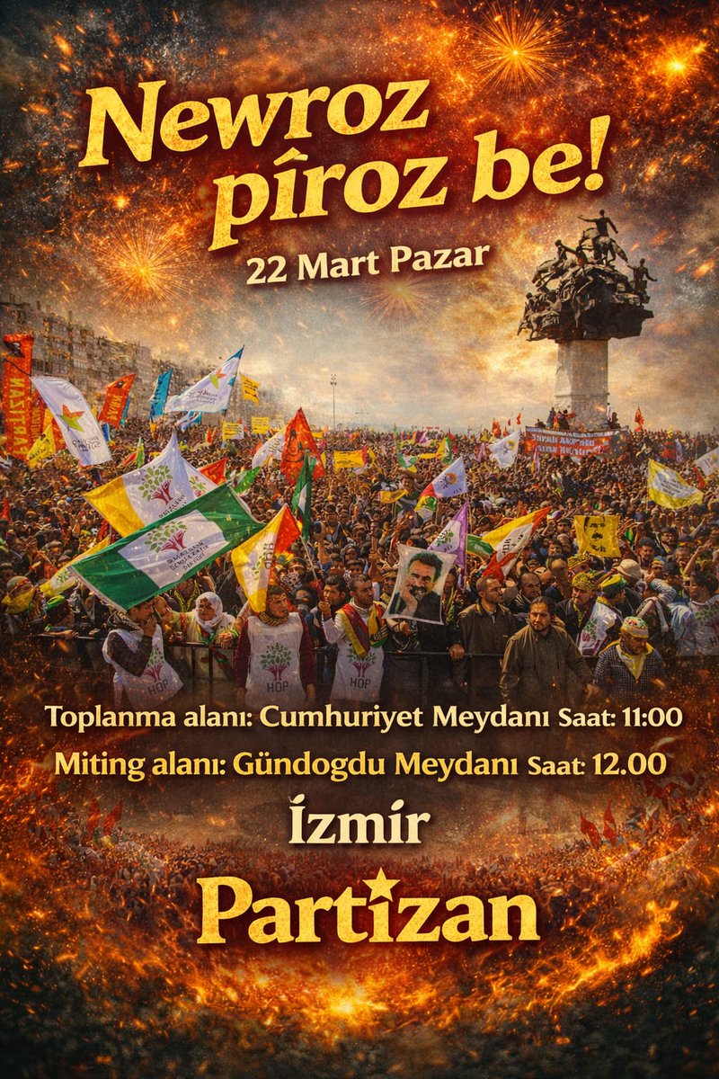 İzmir’deki etkinlik için ise, “Newroz isyandır! Newroz direniştir! Newroz zalim dehaklara karşı umudun ve özgürlüğün günüdür! Newroz Pîroz Be! 22 Mart 12.00 Gündoğdu Meydanı” ifadeleri kullanıldı.