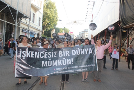 Birleşik Haziran Hareketi, HDP, HDK, TTB’nin de destek verdiği eylemde MKM Müzik Grubu da bendirleri ile eşlik etti. Galatasaray Meydanı’nda son bulan eylemde basın açıklamasını Zeynep Ceren Boztoprak yaptı. Boztoprak, uluslar üstü ve ulusal mevzuattaki hükümlere, oluşturulan bir çok mekanizmaya rağmen işkencenin devam ettiğini belirterek işkencenin önlenmesi, yasaklanması ve insanlık suçu sayılmasında başarı sağlanamadığına değindi.