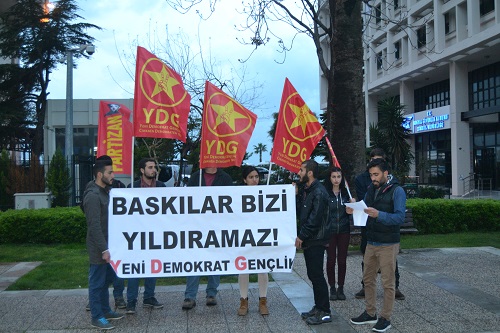 YDG olarak faşizme, emperyalizme, feodalizme, şovenizme karşı kesintisiz mücadeleyi sürdüreceklerini dile getiren Çevik son olarak “TC devletinin gençlik üstündeki bu baskı ve sindirme politikalarına diz çökmüyor, diz çökmeyen Denizlerin, Mahirlerin, Mazlumların ve İbrahim Kaypakkaya’ların ardılları olarak bu direnişi büyütüyoruz!” dedi.