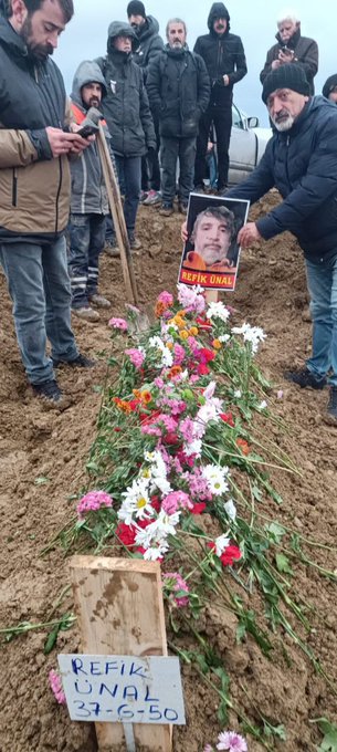 Refik Ünal’ın kendine hep kılavuz edindiği Kapital konularak toprağa verildi. Yoldaşları, sevenleri, dostları kızıl karanfiller, kır çiçekleriyle toprağını süsleyerek ona veda etti.